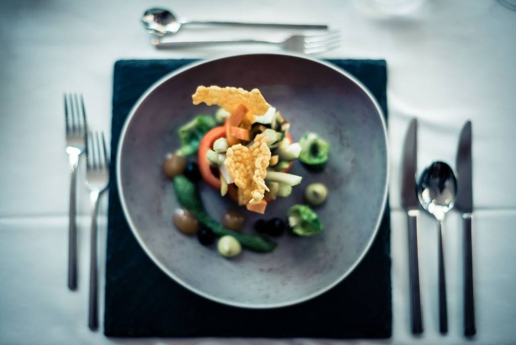 Breakfast experience with an excellent choice of options in buffet style. Lunch in buffet style including live show cooking, selection of hearty pasta, fine soups, crisp salads, other Mediterranean delicacies, fresh fruit, homemade cakes, and tartes. Dinner in gourmet style including seven-course dinner based on a range of menus or vegetarian options and Italian cuisine. Awarded with three toques by Gault Millau in 2019.